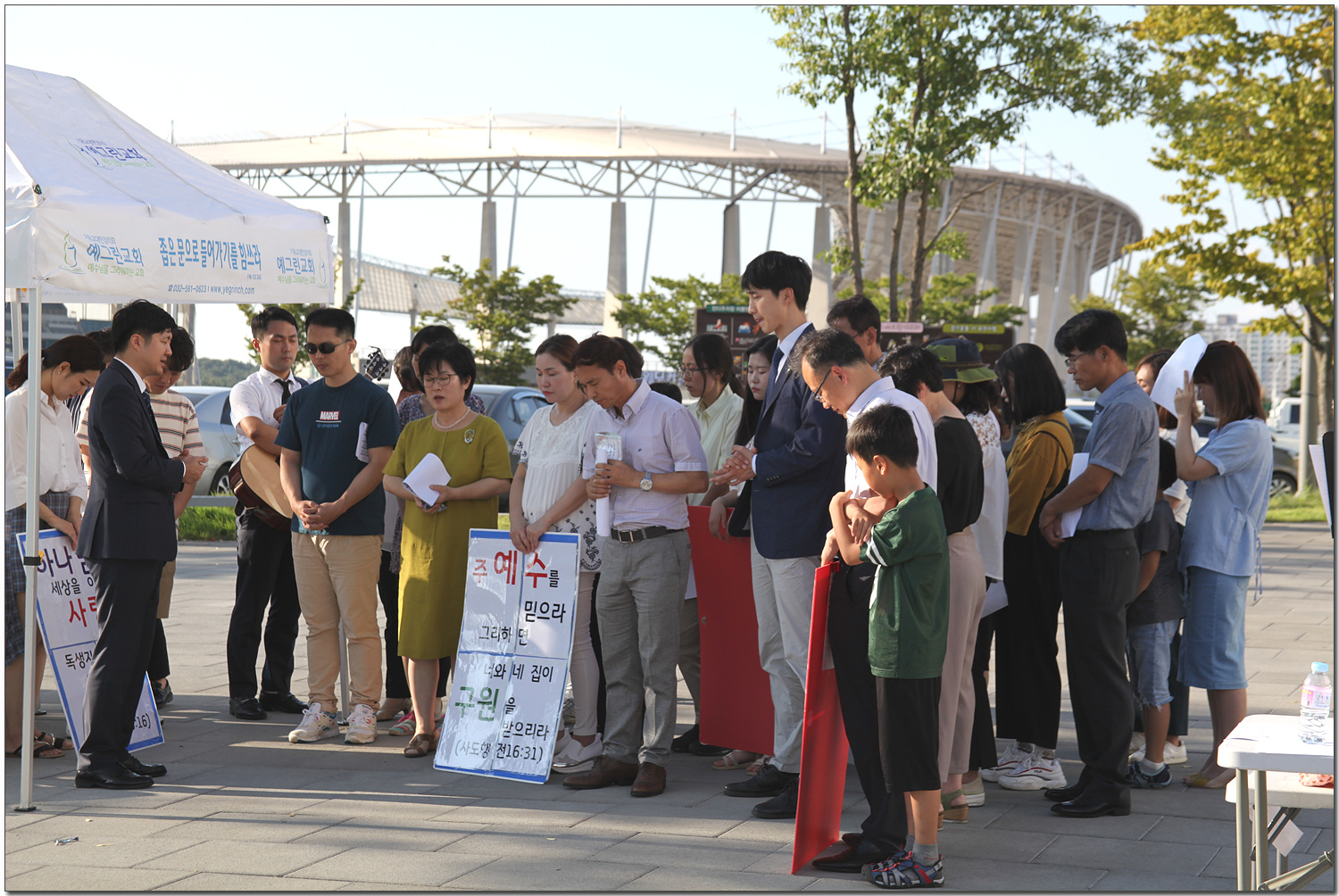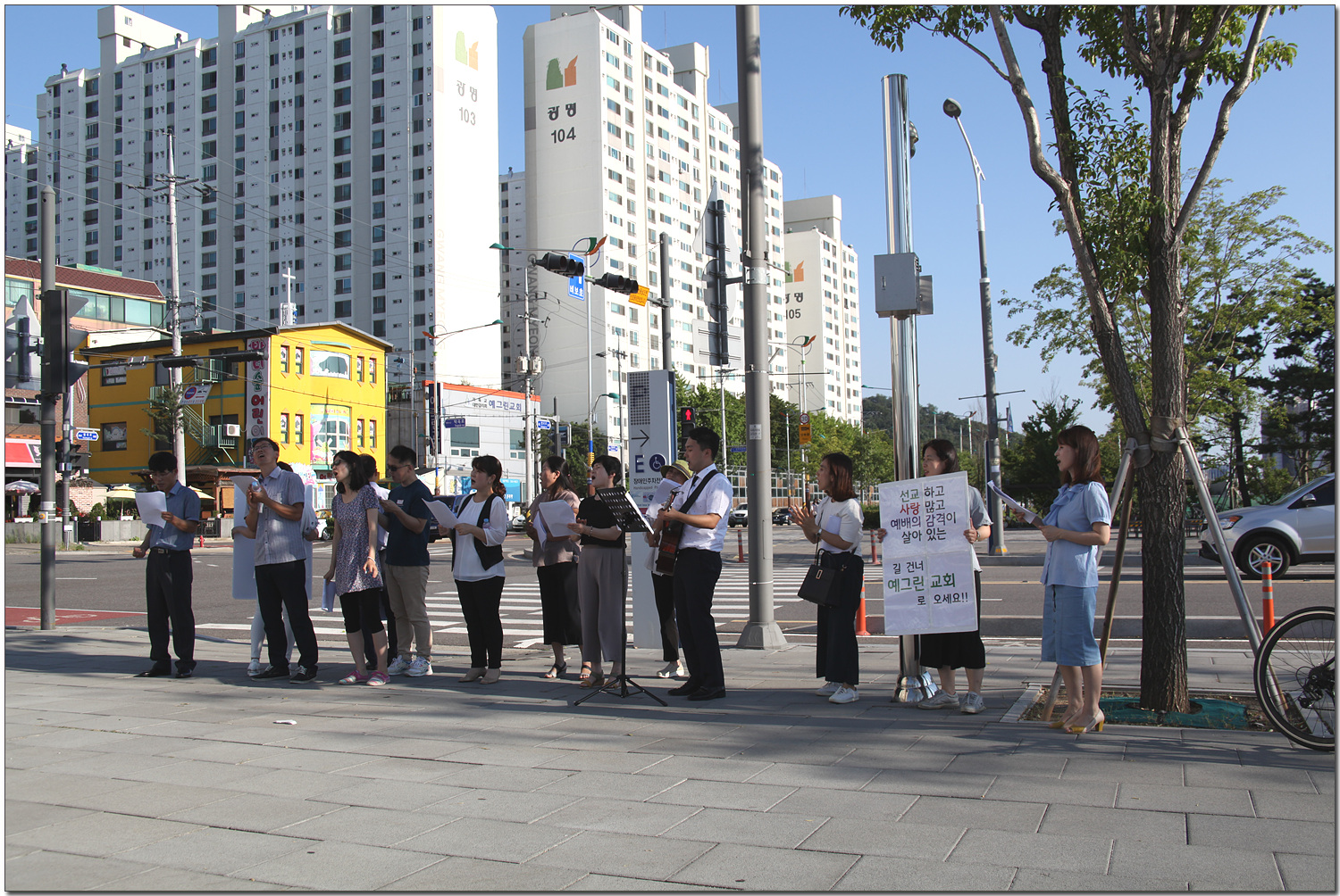하나님의 영광을 높여드리는 찬양을 부르며 전도했습니다.